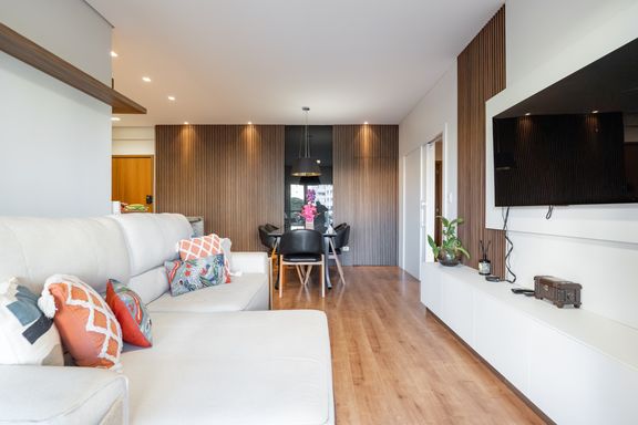 * Imagens internas referentes ao apartamento decorado Edifício Nest 635, empreendimento da construtora PRC, localizado na Zona 8 (apenas 1 quadra da Av. Gastão). São apartamentos de 105 m² privativos, apartamento 401, 2 quartos + 1 suíte, 2 vagas de garagem. Empreendimento conta com uma ampla área de lazer, toda equipada e decorada em alto padrão, e um grande diferencial são as piscinas naturais. Prazo de entrega para Dezembro de 2025 **Edifício:Nest 635**