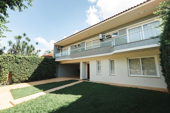 Sobrado de altíssimo padrão, localizado em uma das regiões mais desejadas de Maringá, na parte alta do Cidade Monções. Este imóvel conta com um amplo terreno de 512m², com uma construção de 456m² distribuídos em 4 suítes no pavimento superior, sendo 1 suíte master com um amplo closet e 4 vagas de garagem. Os acabamentos deste imóvel são de alta qualidade, com esquadrias todas em PVC, móveis planejados da Idélli, porcelanatos em grandes formatos, e pedras importadas.