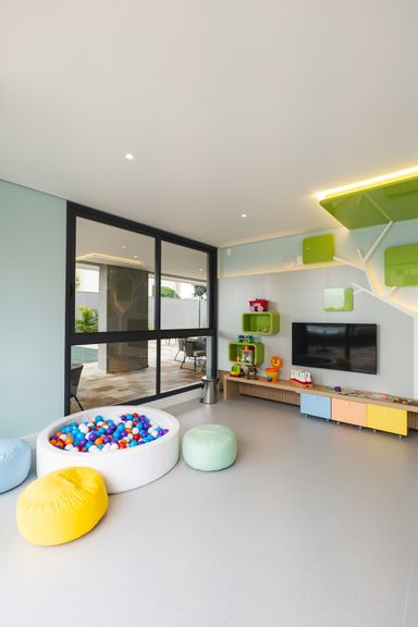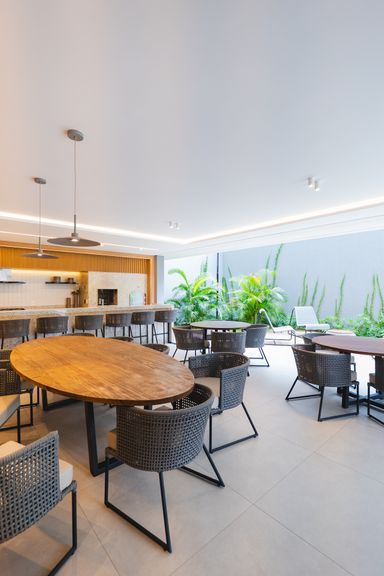 Área de lazer completa: Brinquedoteca, Espaço gourmet, Coworking, Quadra poliesportiva, Sala de jogos, Playground, Garden gourmet, Piscina, Sports bar, Fitness center