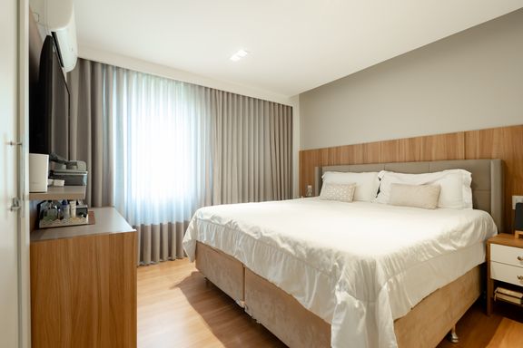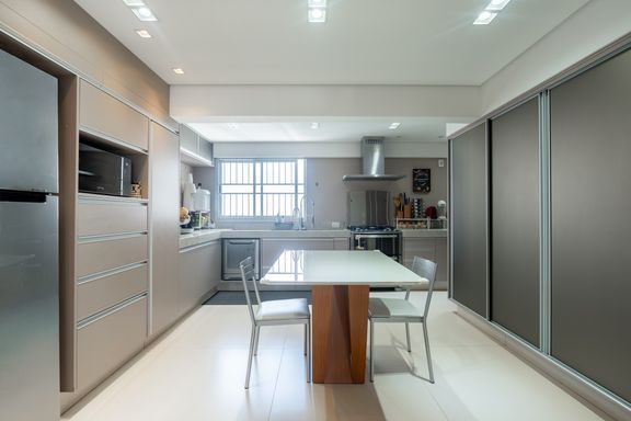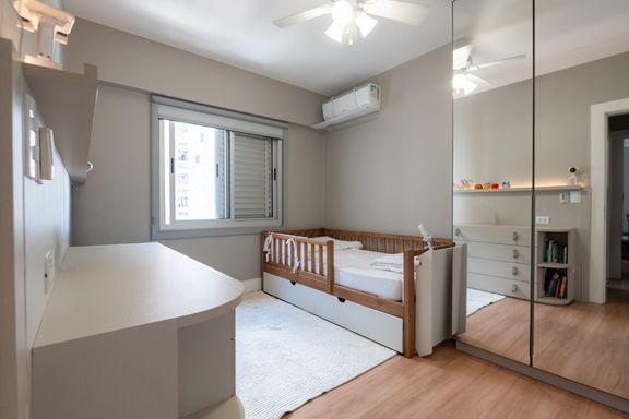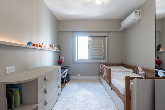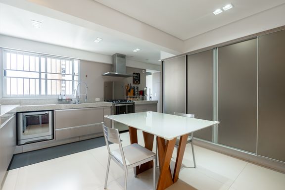 Este apartamento fica no 13° andar com final 01, e foi carinhosamente modificado pelos proprietários que estão mudando apenas porque a família cresceu. Ele conta com 1 suíte e outros 2 quartos, além dos amplos cômodos destinado a sala de estar e jantar que só encontramos em edificações desta idade. A cozinha, é fechada e com espaço suficiente para uma mesa para refeições rápidas. A lavanderia, como era de se esperar, também tem bastante espaço. Além disso, a unidade conta com 2 vagas gavetas.