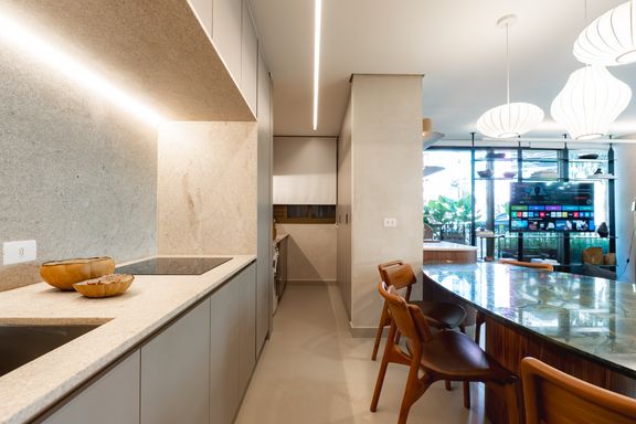 São apartamentos de 105m² de área privativa, 3 dormitórios sendo 1 suíte ou 2 suítes, 2 Vagas de garagem e sacada integrada gourmet com churrasqueira a carvão