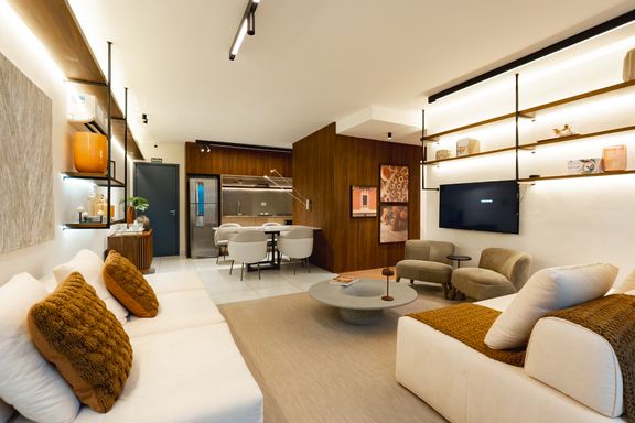 São apartamentos de 79m² de área privativa 2 ou 3 dormitórios sendo 1 suíte, 1 ou 2 vagas de garagem e sacada gourmet com churrasqueira a carvão.