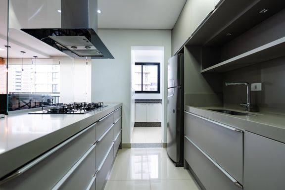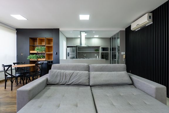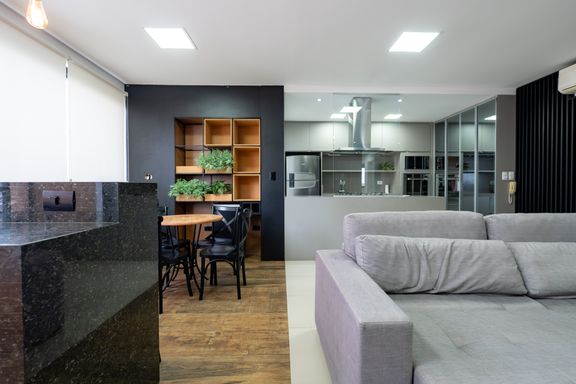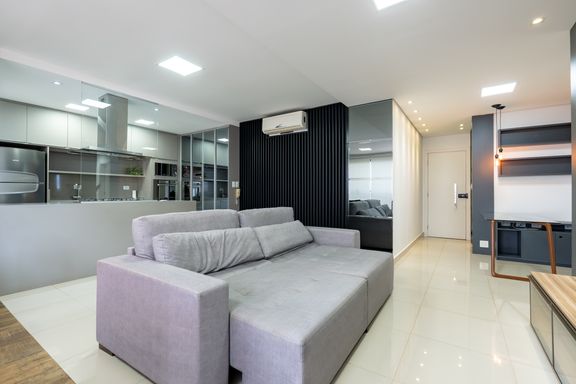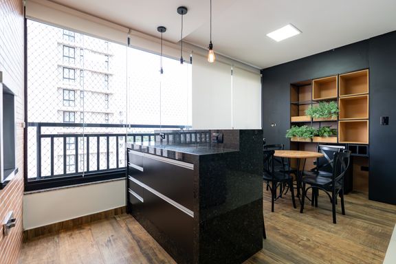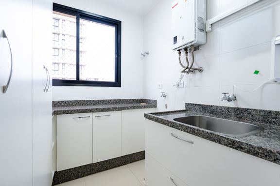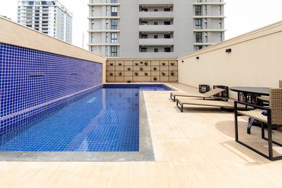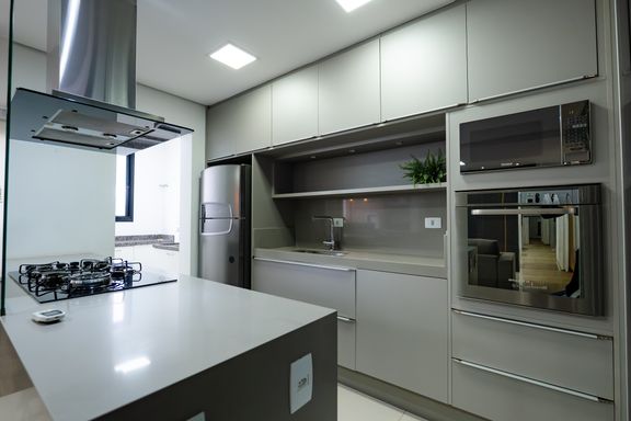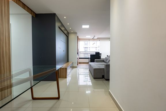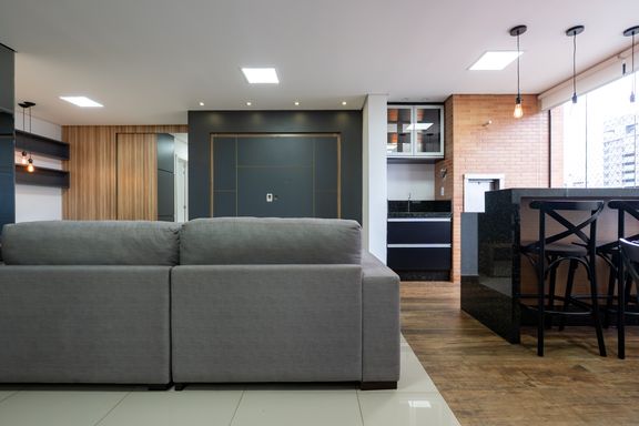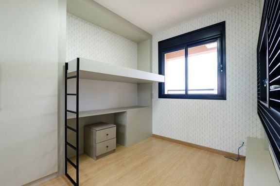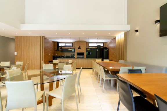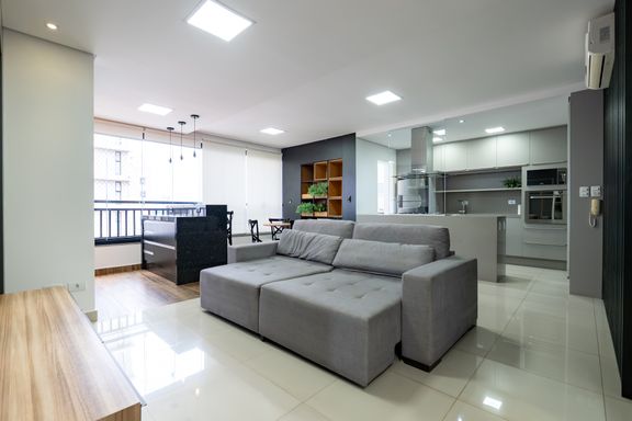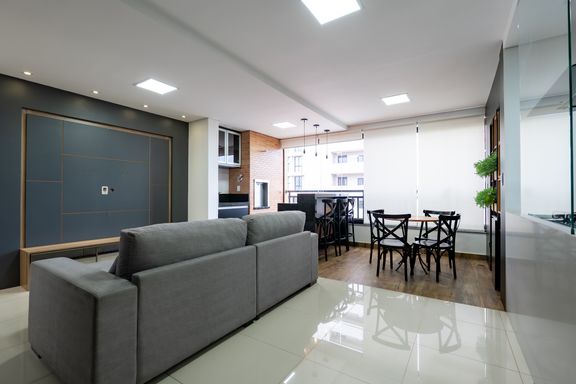 O apartamento é composto por 3 dormitórios, sendo 1 suíte, varanda gourmet integrada, sala de estar e jantar, cozinha e área de serviço.