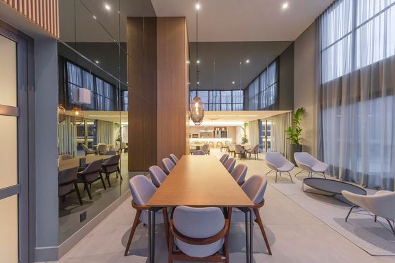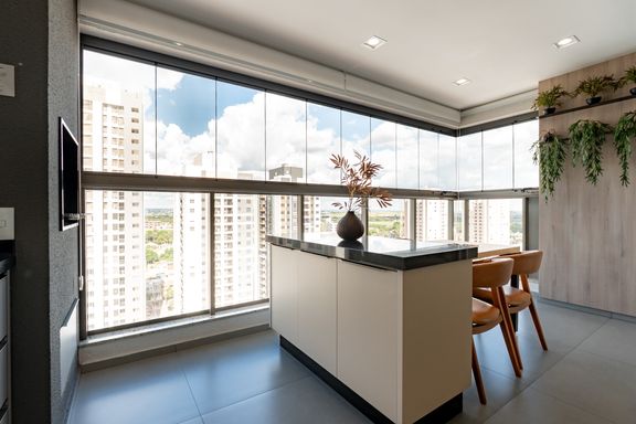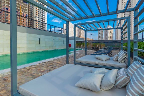 Possui ainda sacada com fechamento em vidro e lavabo, oferecendo mais conforto e praticidade no dia a dia. O condomínio dispõe de área de lazer completa, incluindo espaço gourmet e salão de festas, lavanderia, sports bar, coworking, teen lounge, sala de pilates, academia, playground, brinquedoteca, piscina, quadra esportiva e garden gourmet.