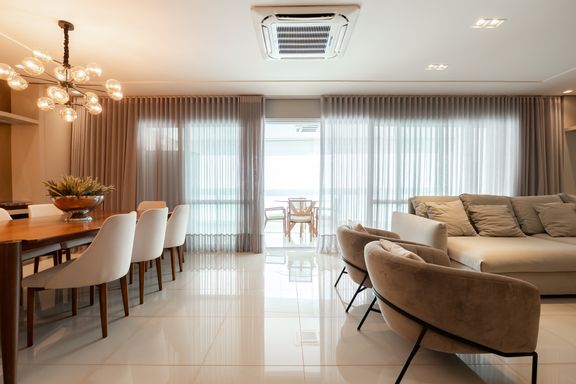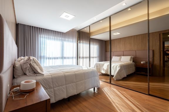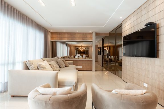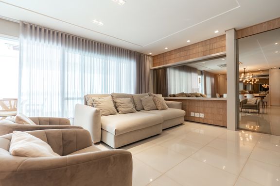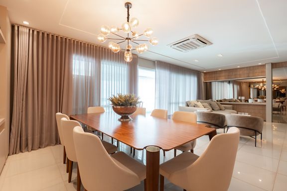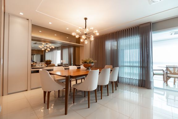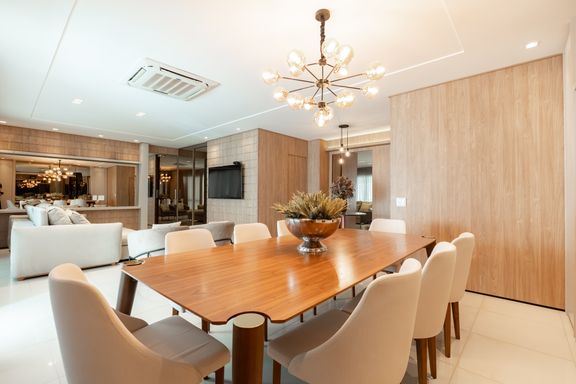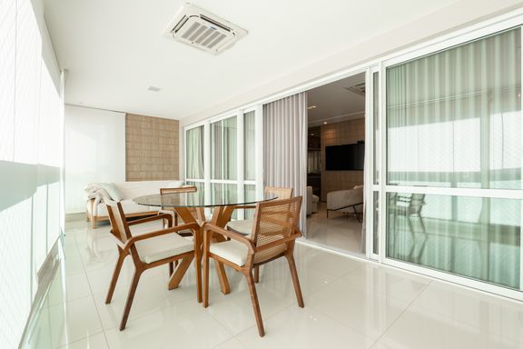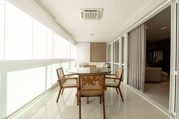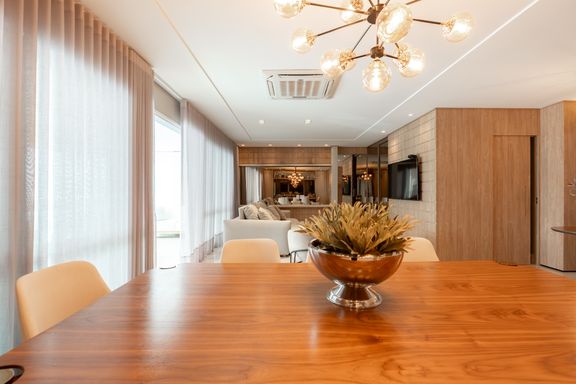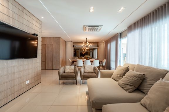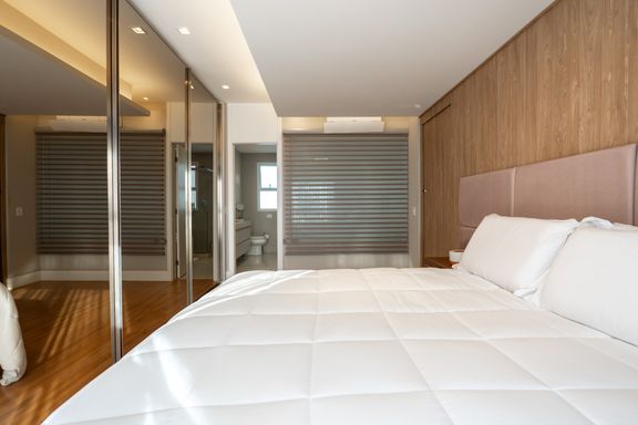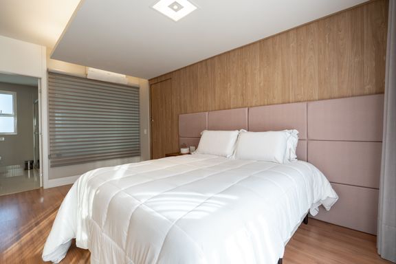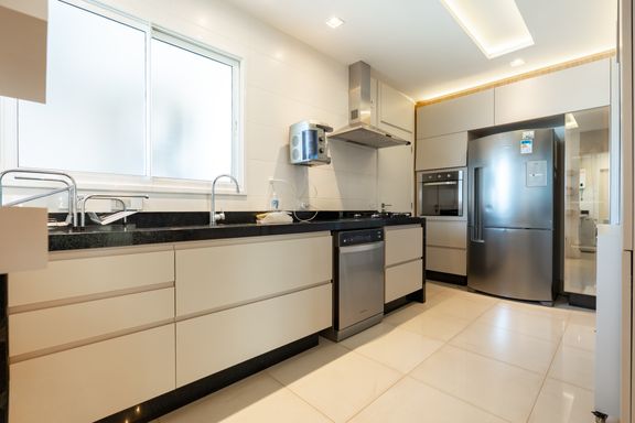 São 179m² privativos distribuídos em 3 suítes amplas, sendo uma master com banheira, sacada com churrasqueira a carvão, elevador privativo, lavabo, cozinha, lavanderia e banheiro de serviço.