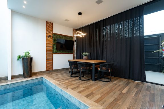 Além dos móveis e eletros o diferencial desta casa é os detalhes: porcelanato, rodapé embutido, gesso rebaixado em todos os ambientes, granito nas portas, janelas e escadaria, esquadrias de alumínio, persianas automatizadas e muito mais...