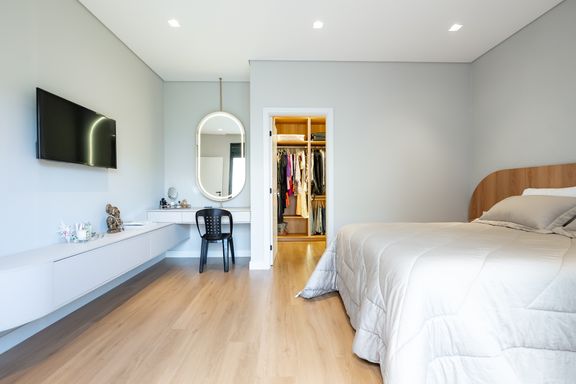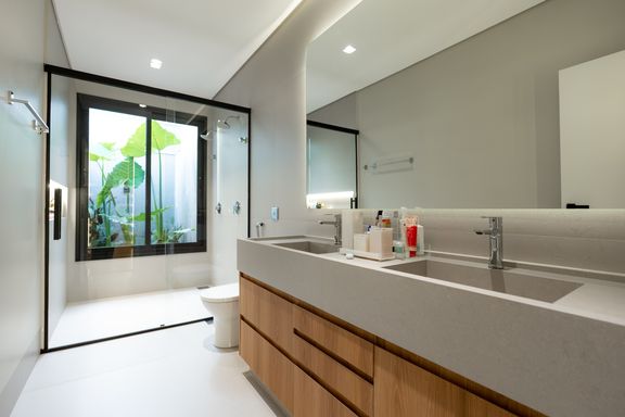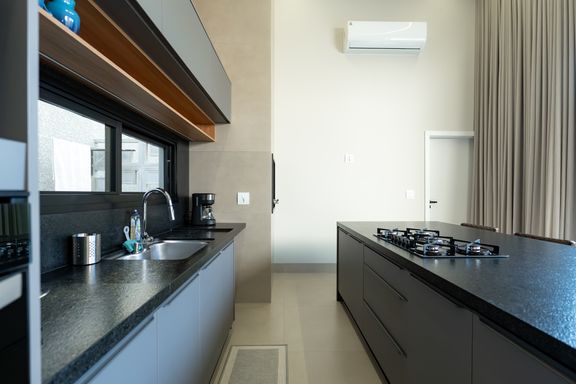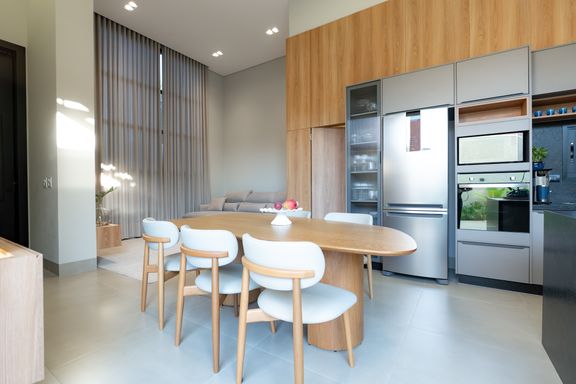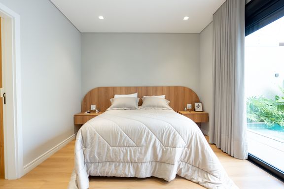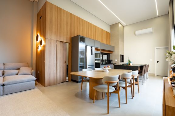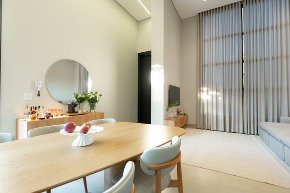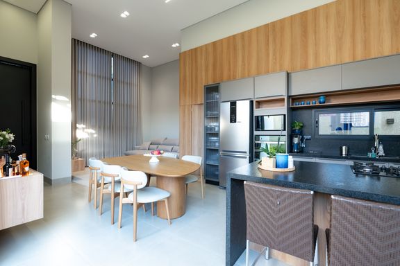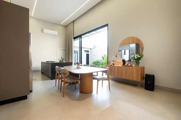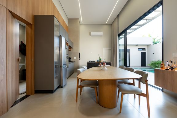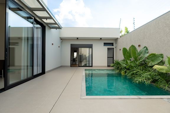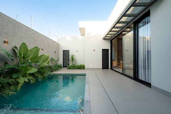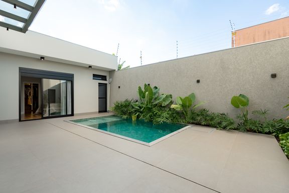 Casa térrea mobiliada à venda no Jardim Tóquio. O imóvel conta com 1 suíte com closet e vista para a piscina e 2 quartos com jardim lateral, proporcionando mais iluminação e contato com a natureza.