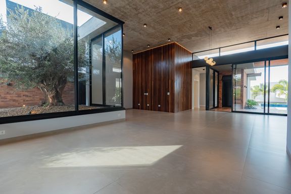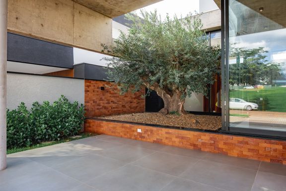 Uma casa onde a natureza encontra com a sofisticação, o moderno com o rústico, tornando uma arquitetura única. A mesma possui uma Oliveira Centenária em sua fachada, simbolizando paz, glória e prosperidade.