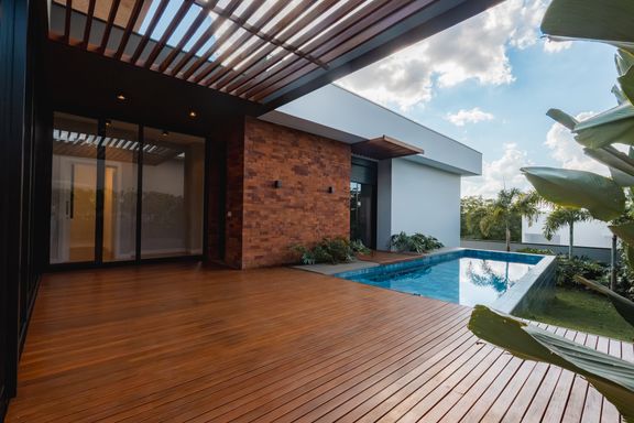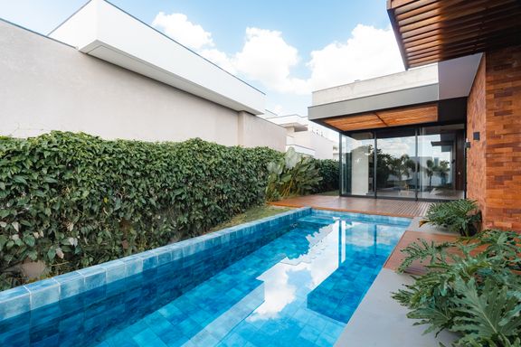Localizada na quadra E, a mesma possui 273,43 m² de construção e 525,54 m² de terreno, sendo 03 suítes, escritório (04ª suíte), gourmet, piscina com deck de madeira e 02 vagas paralelas.