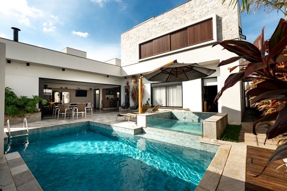 Sobrado em condomínio à venda. Jardins de Monet Thermas Residence; Quadra A; 408,00 m² de Construção; 464,15 m² de Terreno; 01 Suíte Master c/ Closet, Banheira de Imersão e Sacada; 02 Suítes; Sala Íntima Multifuncional (Home, Brinquedoteca ou Escritório; Sala de Estar e Jantar Integrada; Cozinha Gourmet c/ Ilha e Bancada + Lareira Integrada; Lavabo; BWC Social; Depósito; 02 Vagas de Garagem Cobertas; 02 Vagas de Garagem Descobertas; SPA Jacuzzi c/ Paisagismo Completo; Porcelanato Portinari; Acabamentos em Pedras Travertino Romano e Nacional, Atenas e Moledo; Ilha e Bancada em Mármore Michelangelo; Escada em Madeira Natural; Valor de Venda: R$ 4.300.000,00; Valor do Condomínio: +ou- R$ 1.300,00; Agende já a sua visita e venha conhecer.